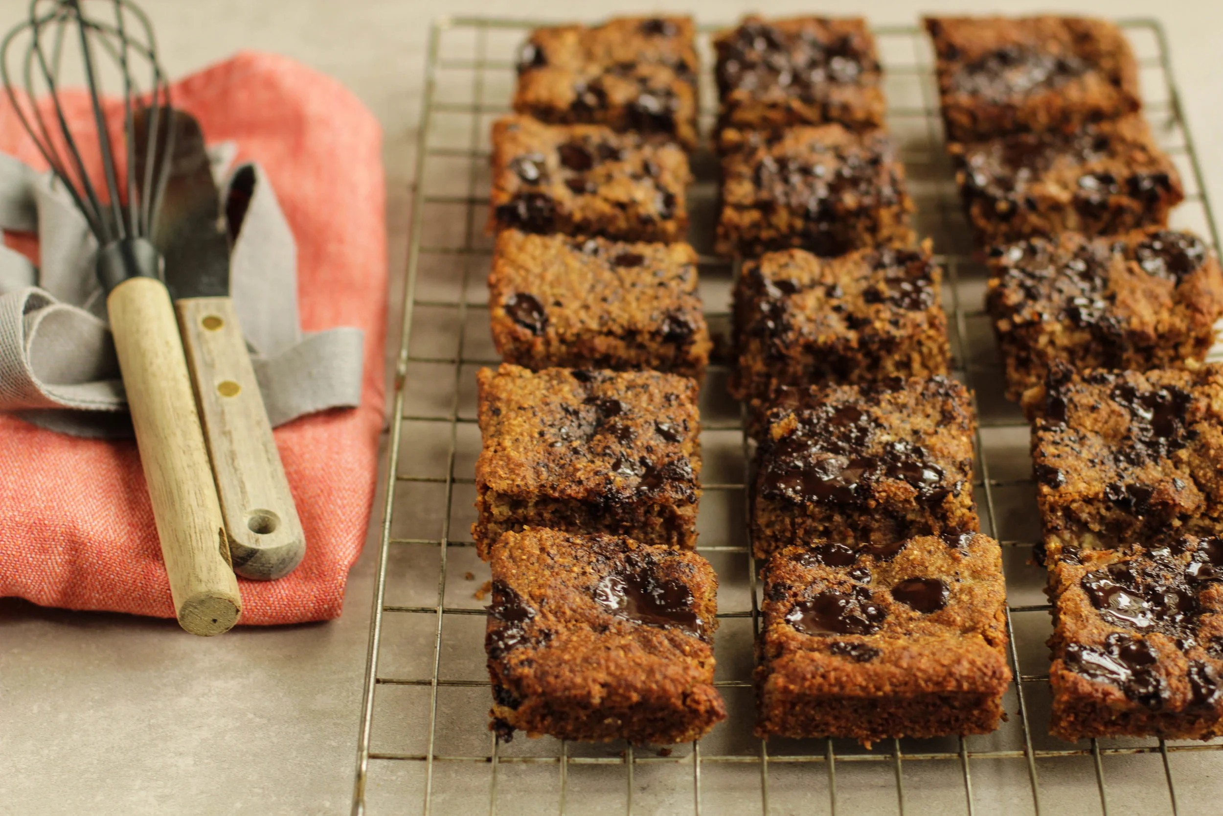 Stir all the dry ingredients together (apart from the chocolate) and mix in the wet until you get a thick batter