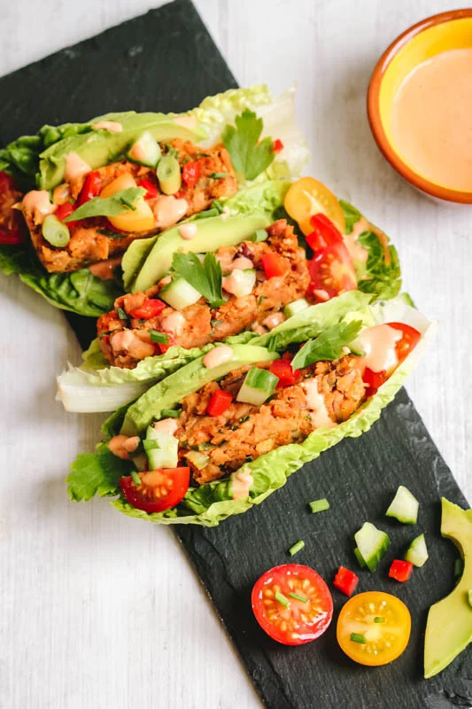 Lettuce leaves as wraps or you could use taco shells if you wished