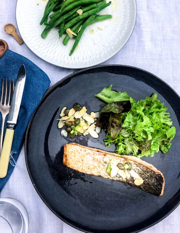 Pan Fried Salmon with a Caper & Toasted Almond Salsa
